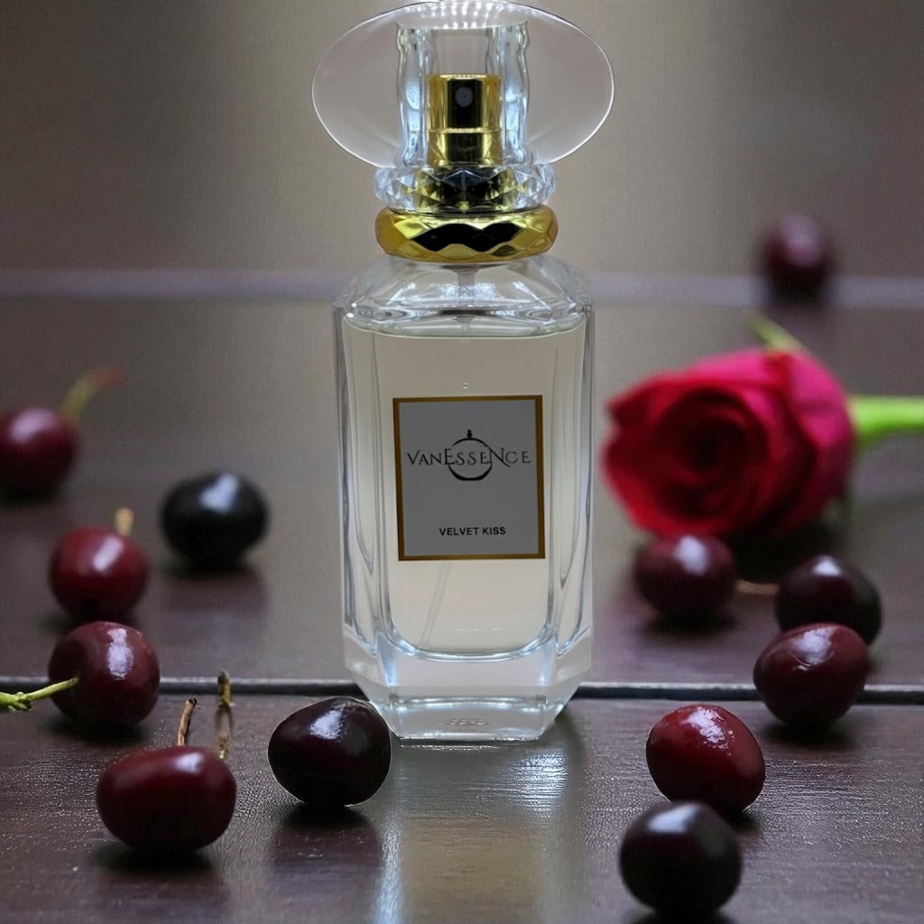 Velvet Kiss unfolds with the rich allure of luscious black cherry, cherry liqueur, and bitter almond, elegantly balanced by lush rose and jasmine sambac. The base notes of sandalwood, vetiver, and cedarwood create a cozy, enduring finish. Ideal for intimate candlelit dinners, elegant black-tie events, and chilly evenings when leaving a memorable impression matters most.